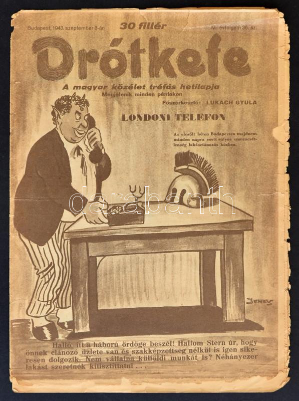 1943 Bp., A Drótkefe, A magyar közélet tréfás hetilapja IV. évfolyam 3... https://www.darabanth.com/de/264-Fernauktion/264.0/Andere-Sammelgebiete/Drucksachen~25/1943-Bp-A-Drotkefe-A-magyar-kozelet-trefas-hetilapja-IV-evfolyam-36-szam-8p~II1319547