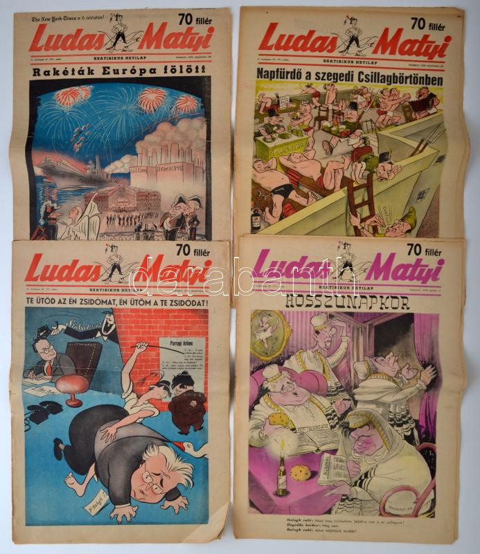 1946 A Ludas Matyi szatirikus hetilap számai, 4 db https://www.darabanth.com/de/264-Fernauktion/264.0/Andere-Sammelgebiete/Drucksachen~25/1946-A-Ludas-Matyi-szatirikus-hetilap-szamai-4-db~II1314446
