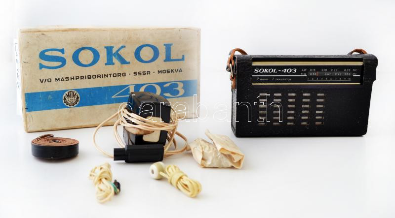Sokol 403 táskarádió eredeti dobozában csatlakozókkal, bőr tokban, 16x... https://www.darabanth.com/de/264-Fernauktion/264.0/Andere-Sammelgebiete/Flohmarkt~10/Sokol-403-taskaradio-eredeti-dobozaban-csatlakozokkal-bor-tokban-16x9-cm~II1318785