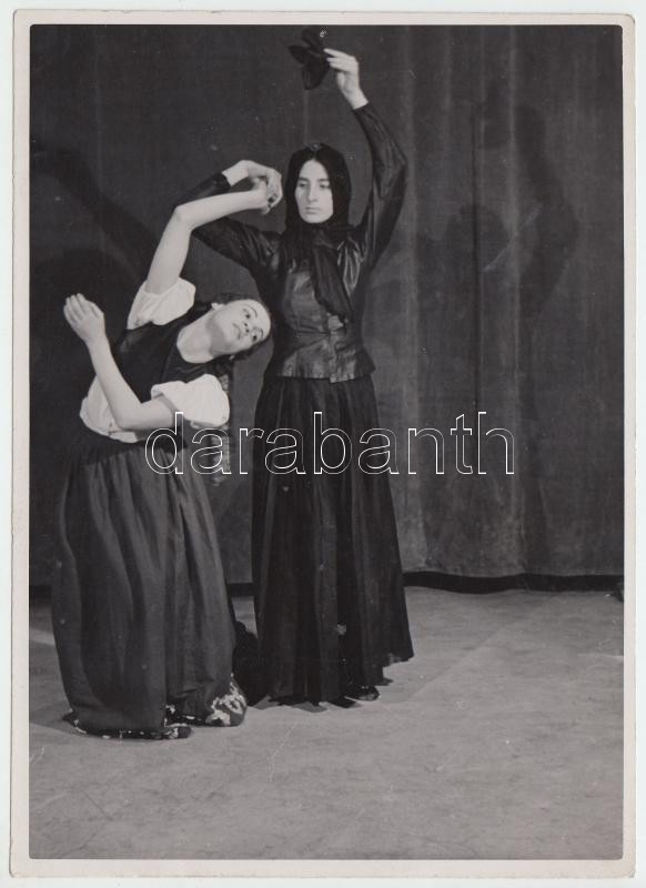 1938 Merényi Lea a Magyar halottasban, Szentpál Olga archívumából előkerült jelzés nélküli vintage fotó, tetején gombostű ütötte minimális sérüléssel, 17x12 cm