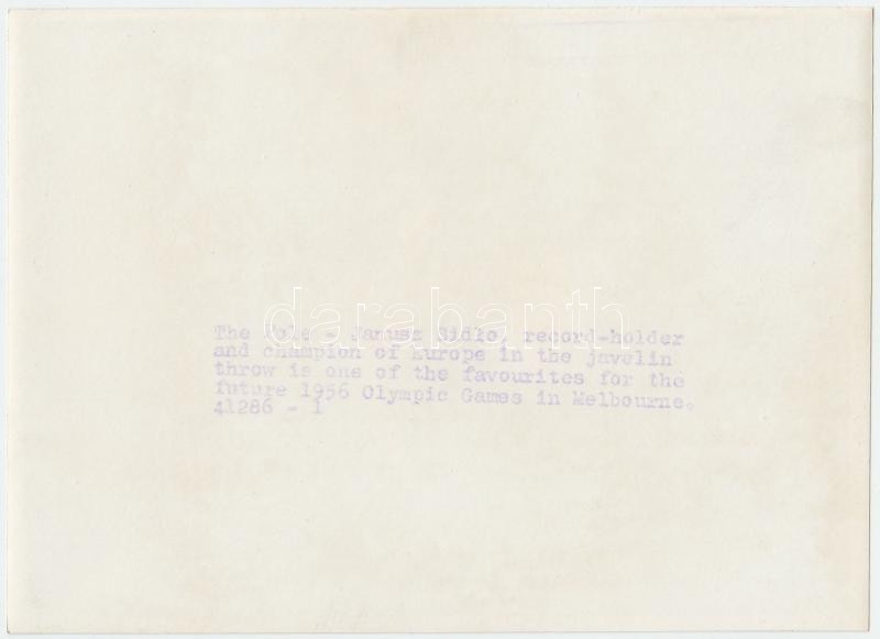 1956 Melbourne, Janusz Sidło(1933-1993) lengyel atléta, feliratozott s... https://www.darabanth.com/de/264-Fernauktion/264.0/Andere-Sammelgebiete/Foto~18/1956-Melbourne-Janusz-SidC582o1933-1993-lengyel-atleta-feliratozott-sajtofoto-18x13-cm~II1314810