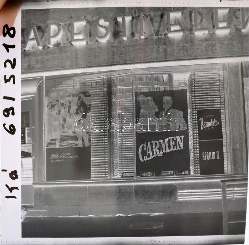 1969 Budapest, a Fővárosi Moziüzemi Vállalat reklám oszlopai, plakátjai, mozi kirakatai, ahol és amelyeken az új filmeket hirdették, 67 db jogdíjmentes és szabadon felhasználható negatív, 4x6 cm és 6x6 cm