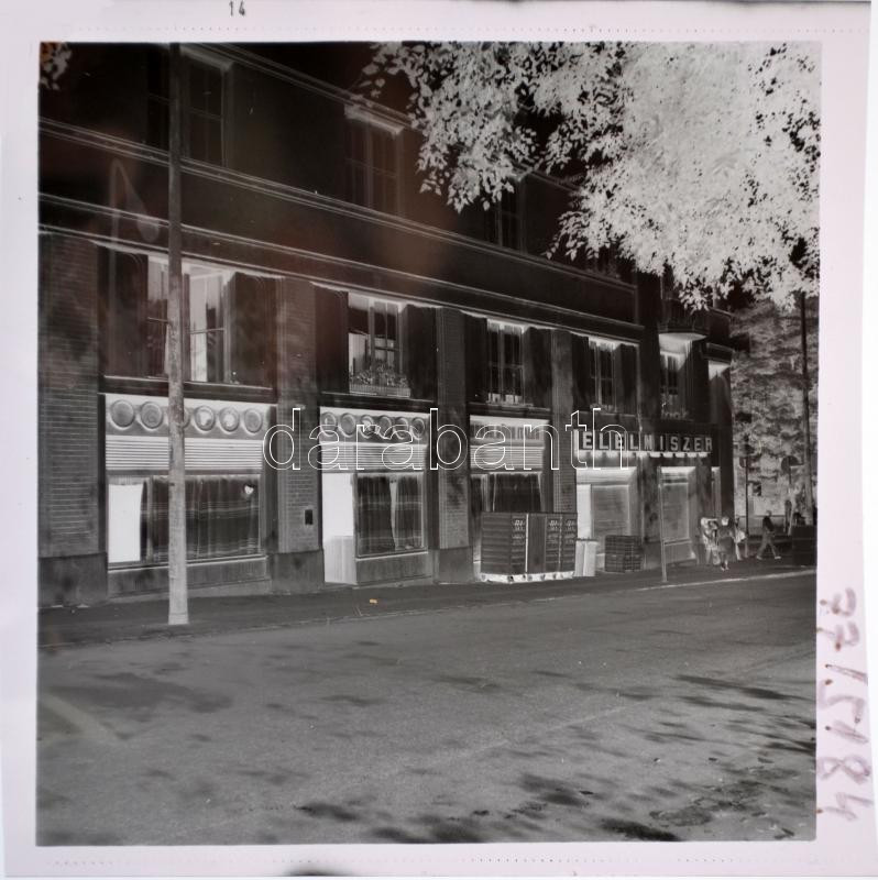 Beschreibung: 1977 Budapest, Óbudai Közért, 3 db szabadon felhasználható, jogdíjmentes, professzionális negatív az utcai homlokzatról, 6x7 cm
