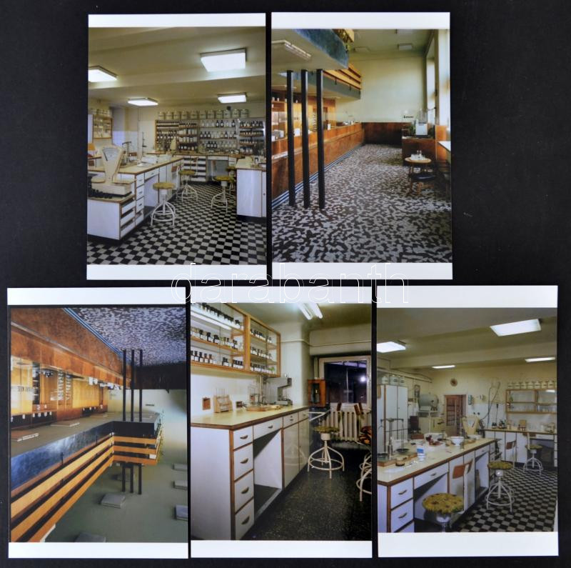 1981 Budapest, VIII. ker., Üllői u. 121. Gyógyszertári belső felvételek, 5 db szabadon felhasználható, jogdíjmentes professzionális 6x7 cm-es negatív és ezekről készült 5 db modern nagyítás, adatolva a negatívok nyilvántartó füzetében volt, 10x15 cm