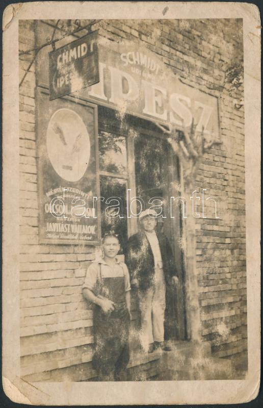 cca 1900 Schmidt cipész üzlete előtt, fotólap, felülete kopottas, 9x14... https://www.darabanth.com/de/264-Fernauktion/264.0/Andere-Sammelgebiete/Foto~18/cca-1900-Schmidt-cipesz-uzlete-elott-fotolap-felulete-kopottas-9x14-cm~II1318366