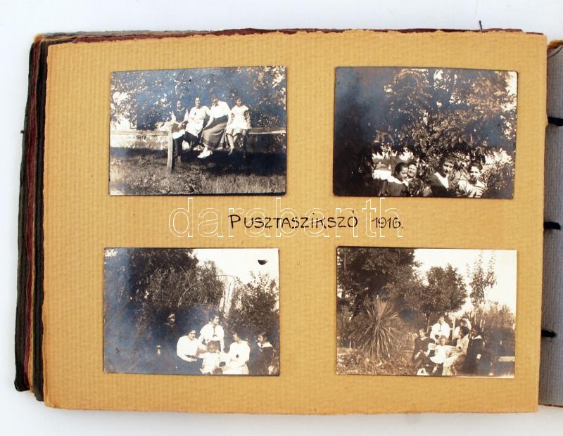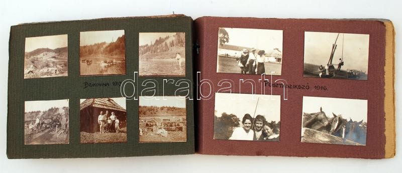 Beschreibung: cca 1906-1918 Fotóalbum marosújvári, zavari, pusztaszikszói, bukovinai képekkel, néhány katonai fotóval, 155 db különböző méretű képpel