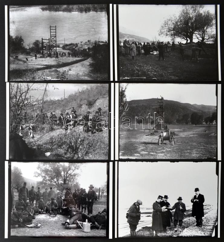 cca 1912 Magyar Kir. Posta szakemberei építik a vezetékes telefon és távíróvonalat Belgrádig, Kerny István (1879-1963) mérnökként részt vett a munkálatokban, közben készültek a tételben szereplő fényképek, 13 db korabeli negatívról modern nagyítások, 13x18 cm