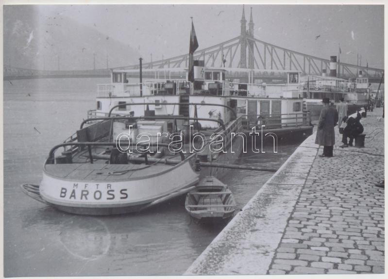 Beschreibung: cca 1930 Budapest, Ferenc József híd, Baross hajó, korabeli felvételről készült modern nagyítás, 11,5x16 cm