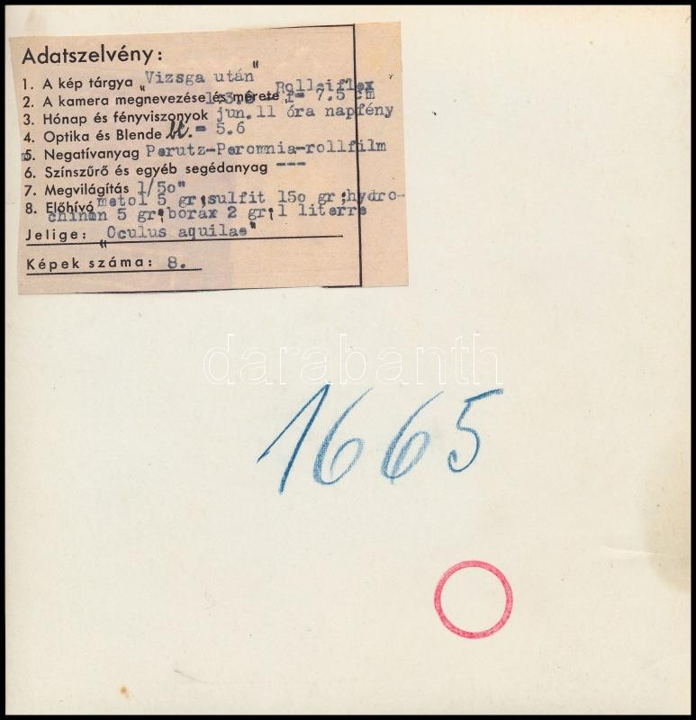 Beschreibung: cca 1935 Thöresz Dezső: Vizsga után és Hazafelé című vintage fotóművészeti alkotása, 2 db fotó, az egyik feliratozott, 18x18 cm
