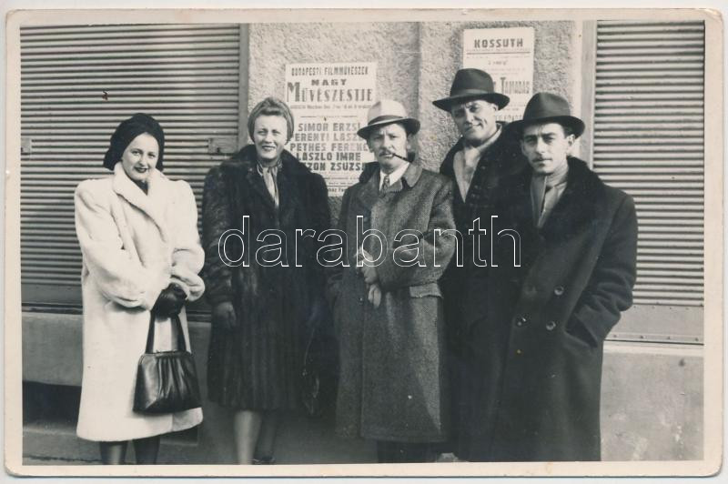 cca 1940 "Budapesti filmművészek nagy művészestje" fotón az est fellépői: Simor Erzsi, Perényi László, Pethes Ferenc, László Imre, Zajzon Zsuzsa, 9x14cm