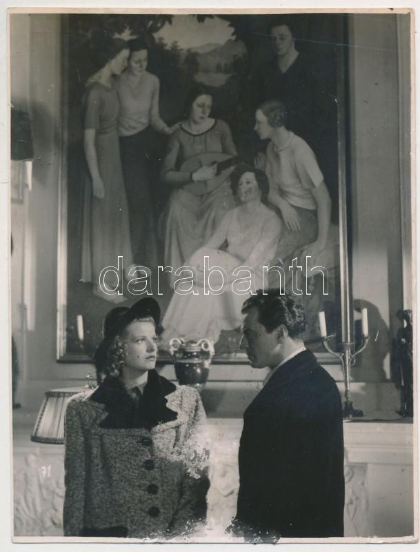 Beschreibung: cca 1940 Korabeli filmjelenet fotó Jávor Pál és Hídvéghy Valéria színművészekkel, 11x8cm