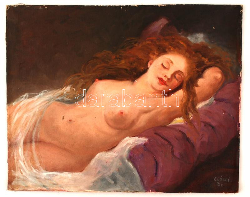 Csók jelzéssel: Fekvő akt. Olaj, farost, 40×50 cm https://www.darabanth.com/de/264-Fernauktion/264.0/Andere-Sammelgebiete/Gemalde-und-Grafiken~1/Csok-jelzessel-Fekvo-akt-Olaj-farost-40C39750-cm~II1315028
