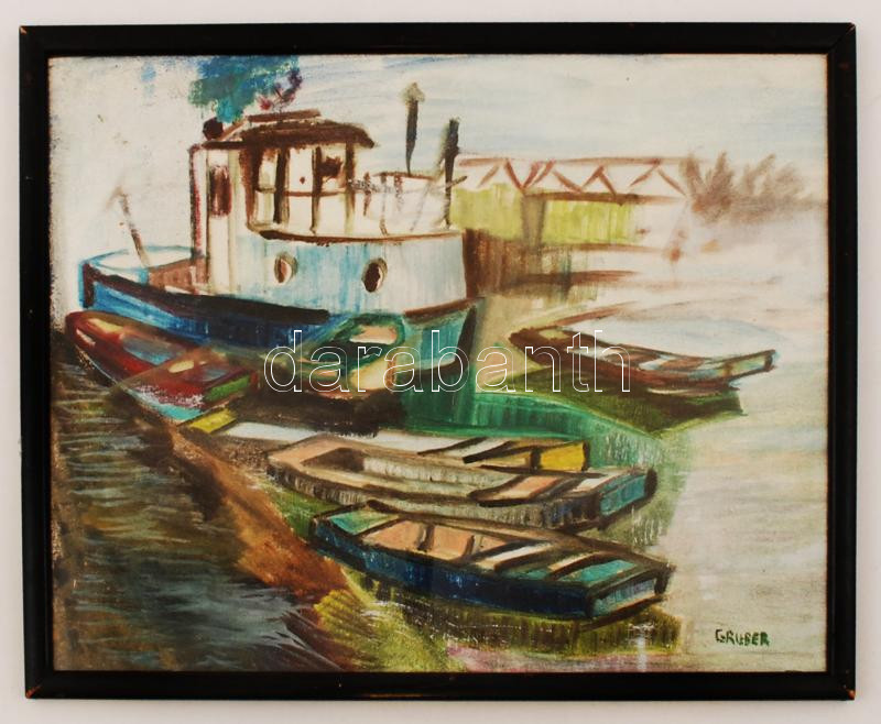 Gruber jelzéssel: Folyami kikötő. Vegyes technika, vászon-karton, üveg... https://www.darabanth.com/de/264-Fernauktion/264.0/Andere-Sammelgebiete/Gemalde-und-Grafiken~1/Gruber-jelzessel-Folyami-kikoto-Vegyes-technika-vaszon-karton-uvegezett-keretben-34C39744-cm~II1313842