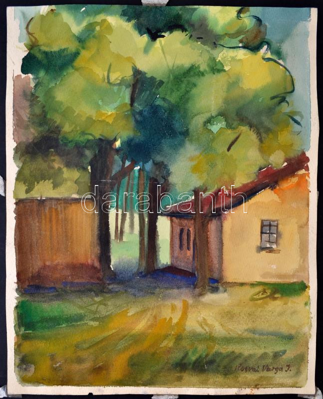 Beschreibung: Ilosvai jelzéssel: Fák a ház mellett. Akvarell, papír, 40×31 cm