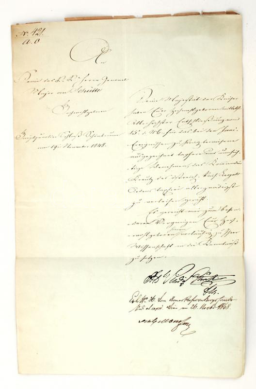 1848 Notification of the Headquarters at Schloss Schönbrunn sent to Adolph Schütte von Warensberg (1777-1859) Major general of Bohemia regarding the donation of the Commander Cross of the Imperial Austrian Order of Leopold