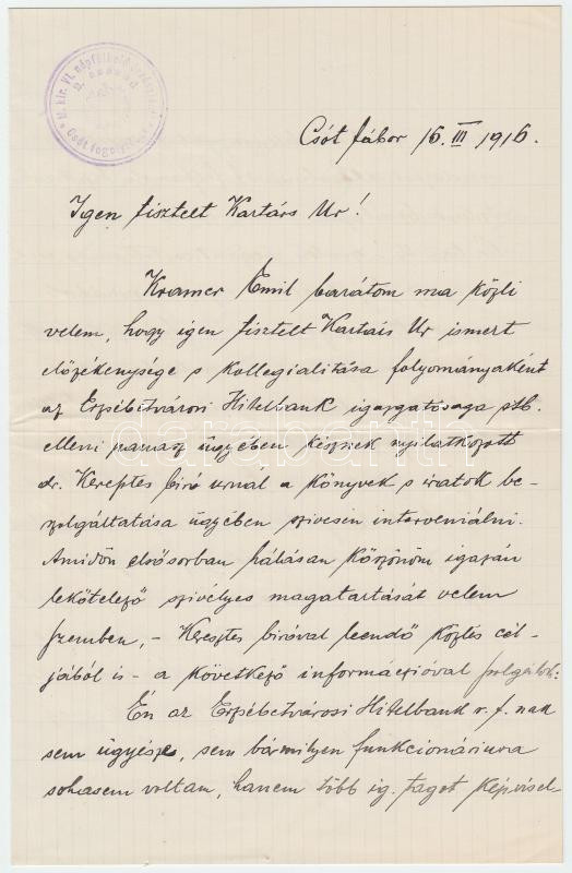 1916 Vallomás, feladva a csóti fogolytáborból, 5 oldal, 23x14cm