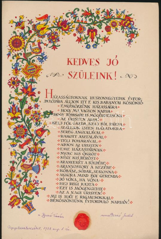 1938 Biczó Judit és Tamás grafikusok kézzel rajzolt üdvözlőkártyája sz... https://www.darabanth.com/de/264-Fernauktion/264.0/Andere-Sammelgebiete/Historische-Dokumenten-Handschriften~16/1938-Biczo-Judit-es-Tamas-grafikusok-kezzel-rajzolt-udvozlokartyaja-szuleiknek~II1317287