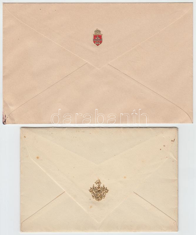 Díszes, címerrel ellátott használatlan borítékok, 2 db