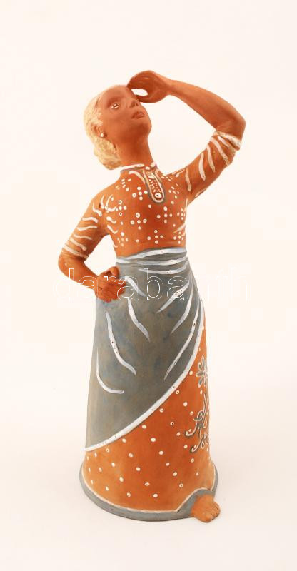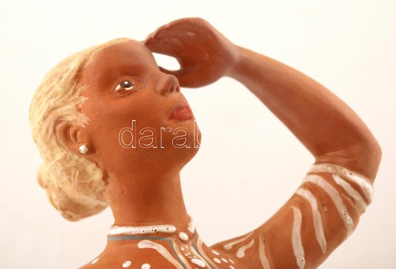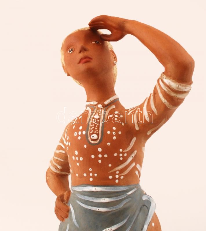 Beschreibung: Kovács Margit (1902-1977): Esőleső. Festett mázas terrakotta, jelzett, hibátlan, m:37 cm