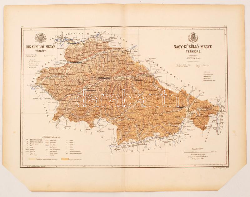 Nagy-Küküllő megye térképe, Gönczy Pál - Kogutowicz Manó: Magyarország megyéinek kézi atlasza. Tervezte: - -, rajzolta: - - Bp. (1890.) Posner Károly Lajos és fia. Sarok levágva, 56x45cm