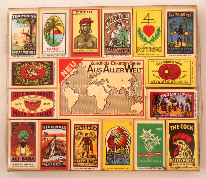 "Aus aller Welt" gyufásdoboz összeállítás, 17 db https://www.darabanth.com/de/264-Fernauktion/264.0/Andere-Sammelgebiete/Streichholzer-Etikett~20/Aus-aller-Welt-gyufasdoboz-osszeallitas-17-db~II1319783