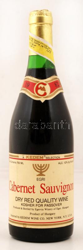 1982 Egri Cabernet Sauvignon pészachi kóser száraz vörösbor, 0,75 l, a... https://www.darabanth.com/de/264-Fernauktion/264.0/Andere-Sammelgebiete/Vintage-Weine~12/1982-Egri-Cabernet-Sauvignon-peszachi-koser-szaraz-vorosbor-0-75-l-angol-es-heber-nyelvu-t~II1314747