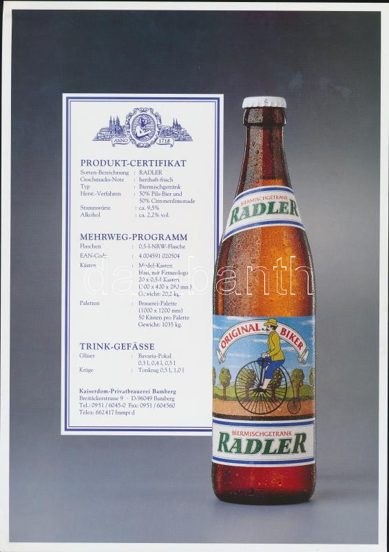 Original Biker Radler sörreklám, 30x21 cm https://www.darabanth.com/de/264-Fernauktion/264.0/Andere-Sammelgebiete/Werbungen~19/Original-Biker-Radler-sorreklam-30x21-cm~II1315118