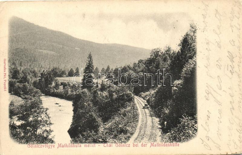 Mathildhuta, Háj-Matilda Huta; a Gölnic völgye, vasúti sín hajtánnyal ... https://www.darabanth.com/de/264-Fernauktion/264.0/Ansichtskarten/Slowakei~200028/Mathildhuta-Haj-Matilda-Huta-a-Golnic-volgye-vasuti-sin-hajtannyal-Hnilec-valley-railway~II1313898