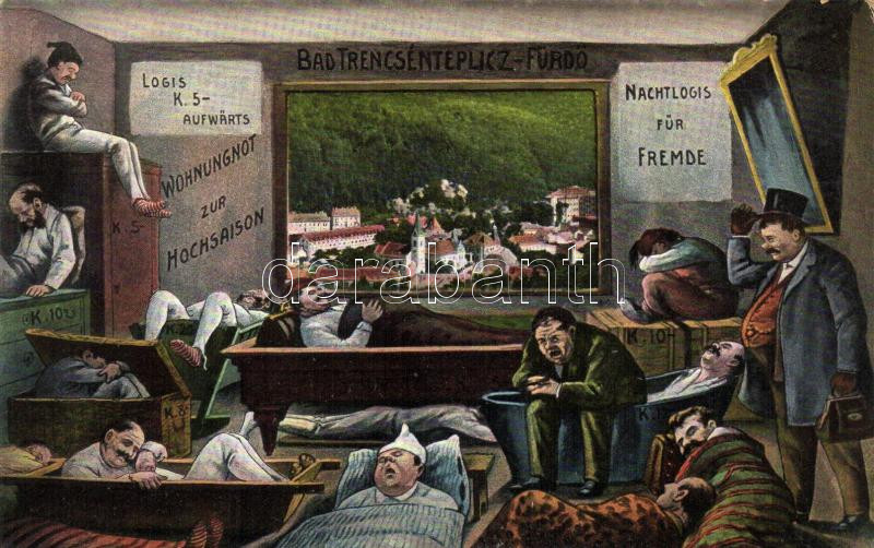 Trencsénteplic-fürdő, Trencianske Teplice; Szállás a vendégeknek főszezonban, gúnyos humor képeslap / room for the guests in high season, mocking humourus postcard (EK)