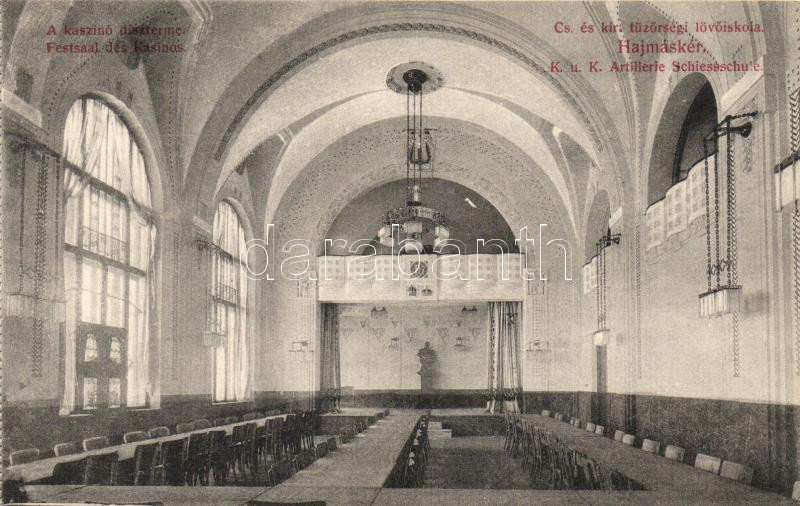 Hajmáskér, Cs. és kir. tüzérségi lövőiskola, Kaszinó díszterme, belső https://www.darabanth.com/de/264-Fernauktion/264.0/Ansichtskarten/Ungarn~200025/Hajmasker-Cs-es-kir-tuzersegi-lovoiskola-Kaszino-diszterme-belso~II1317471