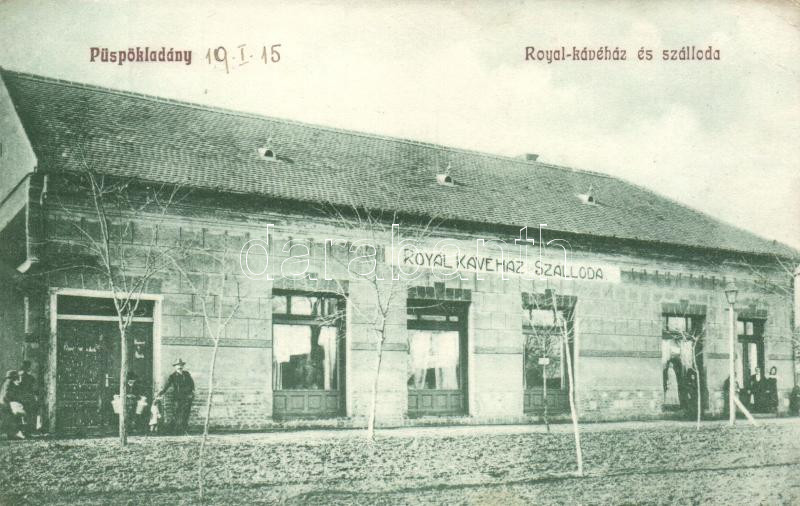 Püspökladány, Royal kávéház és szálloda https://www.darabanth.com/de/264-Fernauktion/264.0/Ansichtskarten/Ungarn~200025/Puspokladany-Royal-kavehaz-es-szalloda~II1318903