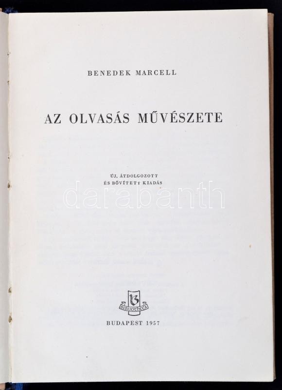 Benedek Marcell: Az olvasás művészete. Bp., 1957, Biblitoheca. Kiadói ... https://www.darabanth.com/de/264-Fernauktion/264.0/Bucher/Bucher-Sonstige-Raritaten~40/Benedek-Marcell-Az-olvasas-muveszete-Bp-1957-Biblitoheca-Kiadoi-egeszvaszon-kotes-jo~II1269118
