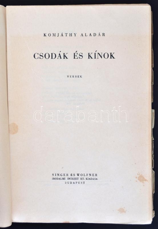 Bp., 1943, Sin... https://www.darabanth.com/de/264-Fernauktion/264.0/Bucher/Bucher-Sonstige-Raritaten~40/Komjathy-Aladar-Csodak-es-kinok-Versek-Elso-kiadas--Bp-1943-Singer-es-Wolfner-119-p~II1318522