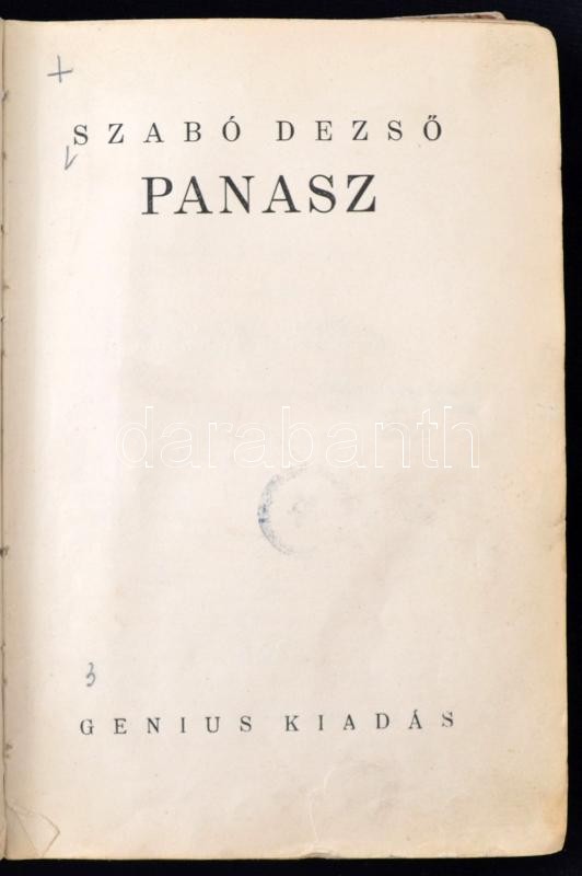 Szabó Dezső: Panasz. Első kiadás. Bp., 1927, Genius. 250 p. Későbbi fé... https://www.darabanth.com/de/264-Fernauktion/264.0/Bucher/Bucher-Sonstige-Raritaten~40/Szabo-Dezso-Panasz-Elso-kiadas-Bp-1927-Genius-250-p-Kesobbi-felvaszonkotesben-Ko~II1318325
