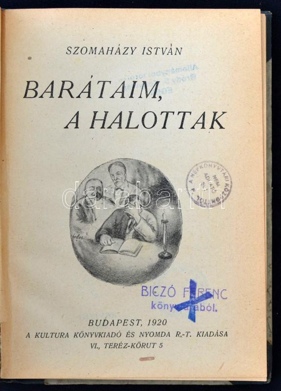 Szomaházy István: Barátaim, a halottak. Első kiadás. Bp., 1920. Kultur... https://www.darabanth.com/de/264-Fernauktion/264.0/Bucher/Bucher-Sonstige-Raritaten~40/Szomahazy-Istvan-Barataim-a-halottak-Elso-kiadas-Bp-1920-Kultura-150-p-Kesobbi-felv~II1318318