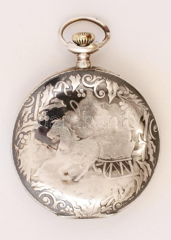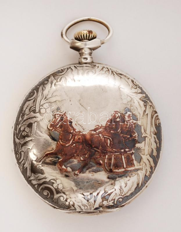cca 1910 Ezüst zsebóra, duplafedeles, svajci szerkezet. téli, szános j... https://www.darabanth.com/de/264-Fernauktion/264.0/Juwelen/Juwelen~41/cca-1910-Ezust-zsebora-duplafedeles-svajci-szerkezet-teli-szanos-jelenettel-kitisztitva-j~II1321274