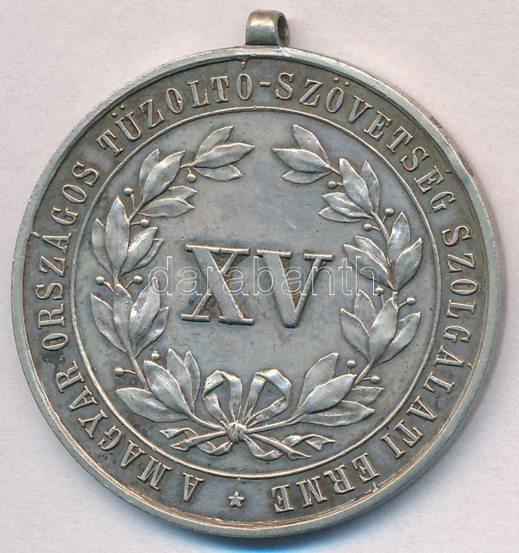 ~1920. "A Magyar Országos Tűzoltó Szövetség XV éves Szolgálati Érme" peremen jelzett ezüst kitüntetés függesztőkarika és mellszalag nélkül (16,19g/0.800/37mm) T:2
