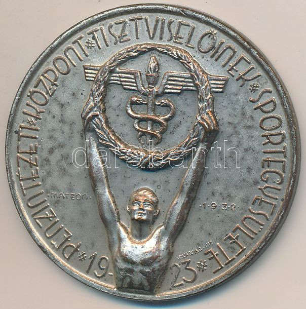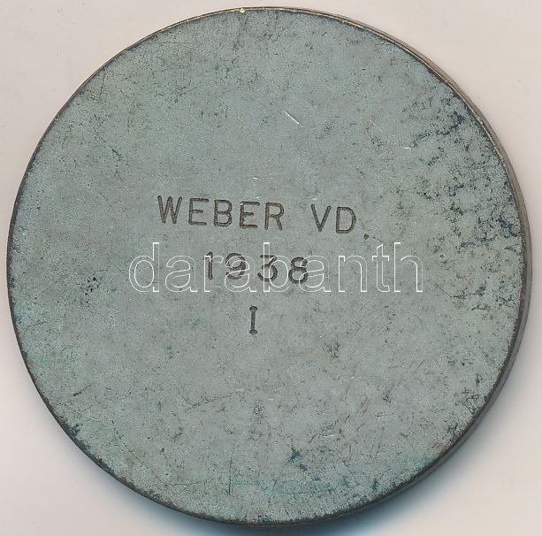 Matzon Frigyes (1909-1986) 1938. "Pénzintézeti Központ Tisztviselőinek Sportegyesülete 1932 / WEBER VD 1938 I." ezüstözött Br emlékérem "ARKANZAS BP." gyártói jelzéssel (50mm) T:2,2-