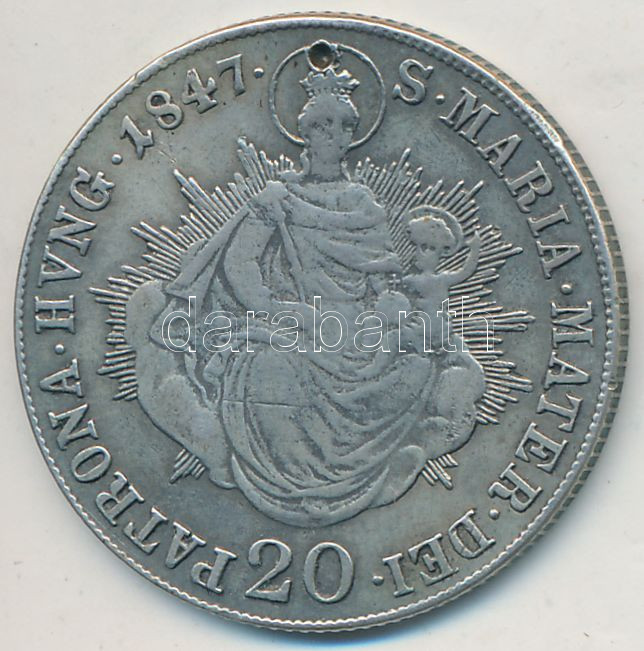 1847B 20kr Ag "V. Ferdinánd" T:2- lyukasztás nyoma, ü. https://www.darabanth.com/de/264-Fernauktion/264.0/Numismatik/Ungarische-Munzen-und-Munzen-mit-ungarischem-Munzzeichen~300007/1847B-20kr-Ag-V-Ferdinand-T2-lyukasztas-nyoma-u~II1318774