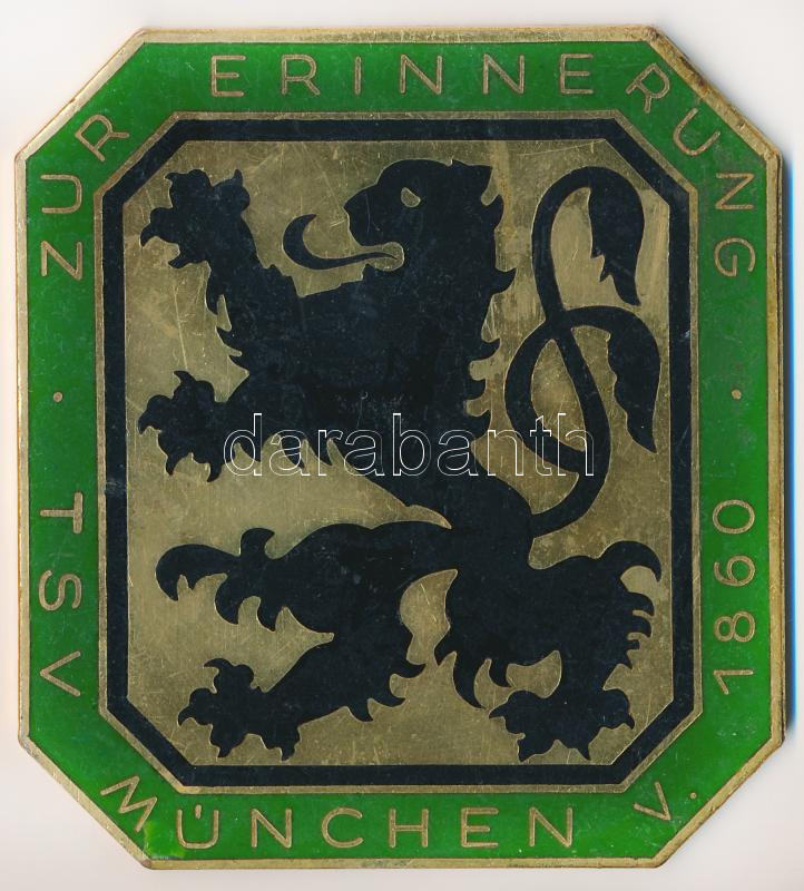 Németország DN "Emlékül - TSV München V. 1860" zománcozott fém plakett (65x72mm) T:2,2- hátoldalán ragasztásnyom Germany ND "Zur Erinnerung - TSV München V. 1860" enamelled metal plaque (65x72mm) C:XF,VF glue mark on back