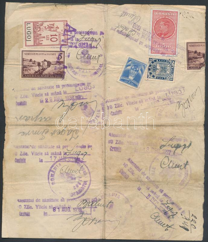 1938 Román marhalevél Lugos illetékbélyeggel https://www.darabanth.com/de/265-Fernauktion/265.0/Andere-Sammelgebiete/Dokument~16/1938-Roman-marhalevel-Lugos-illetekbelyeggel~II1329700