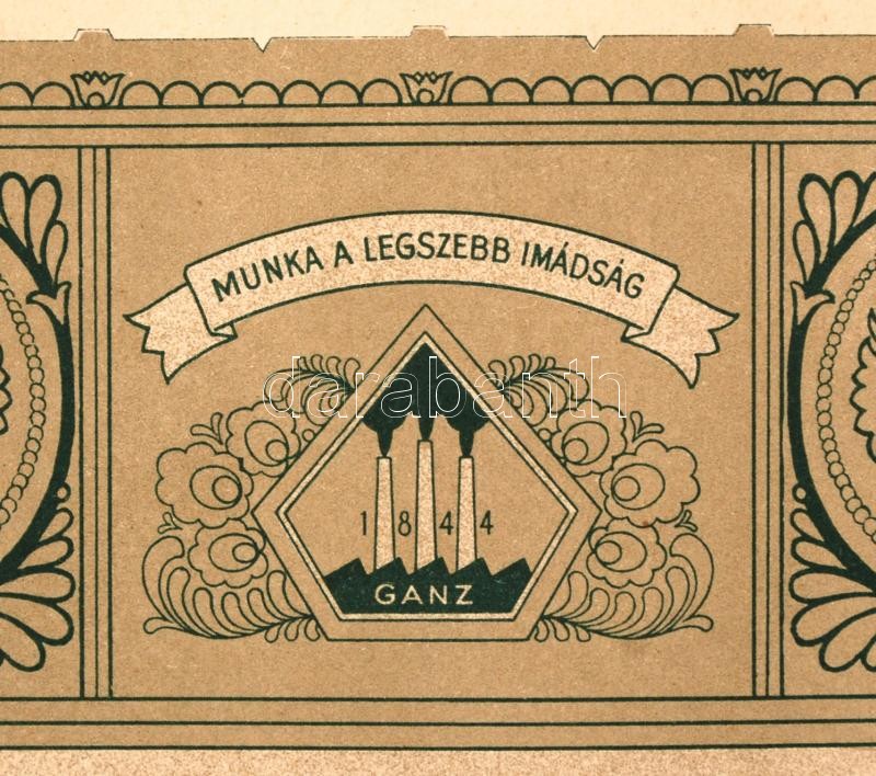1939 emlékoklevél "Ganz és Társa Villamossági Gép, Waggon- és Hajógyár RT. szolgálatban töltött tanuló éveikre" felirattal, a gyárigazgató és az iskolaigazgató aláírásával, keretben, jelzett a nyomat (Klösz, Petrovits Emil), 31×22 cm