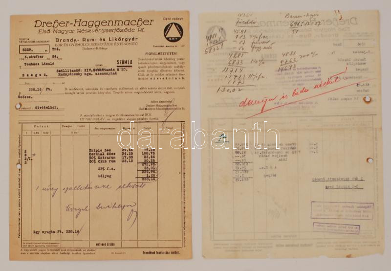 1946-1948 Dreher-Haggenmacher Első Magyar Részvénysörfőzde Rt. által k... https://www.darabanth.com/de/265-Fernauktion/265.0/Andere-Sammelgebiete/Dokument~16/1946-1948-Dreher-Haggenmacher-Elso-Magyar-Reszvenysorfozde-Rt-altal-kiallitott-ket-fejlec~II1322453