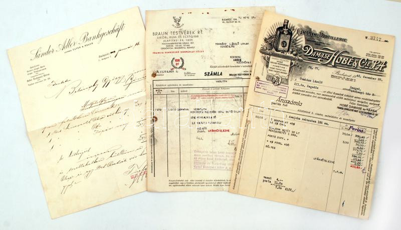 Beschreibung: 1946-49 A Damase Hobé&Cie S.A., a Braun Testvérek Rt., valamint a Sándor Adler Bankgeschäft által kiállított fejléces számálk.