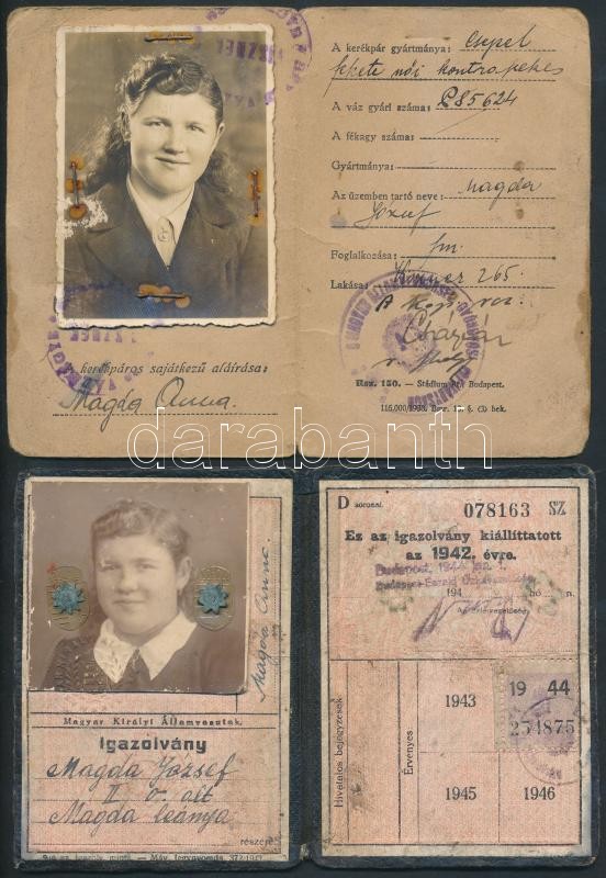 Cca 1948 Légoltalmi, kerékpáros és vasúti igazolvány https://www.darabanth.com/de/265-Fernauktion/265.0/Andere-Sammelgebiete/Dokument~16/Cca-1948-Legoltalmi-kerekparos-es-vasuti-igazolvany~II1248623