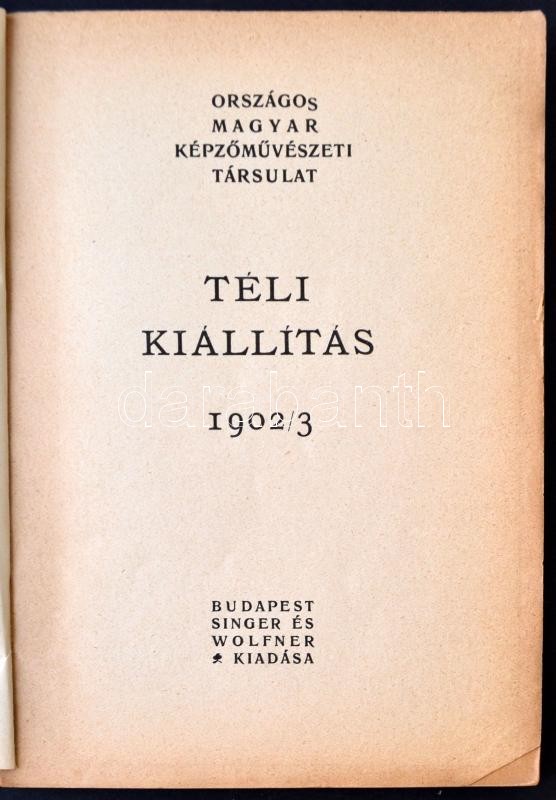 1902-3 Téli kiállítás. Országos Magyar Képzőművészeti Társulat. Budapest, Singer és Wolfner. Kiállítási katalógus. Sok fekete-fehér reprodukcióval és korabeli hirdetésekkel illusztrált. Kiadói papír kötésben.
