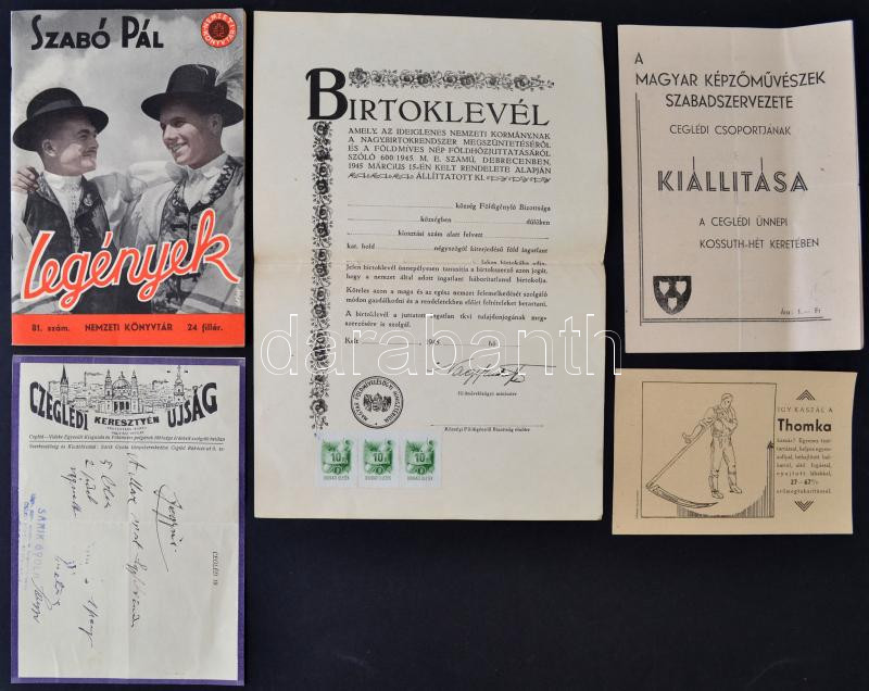 1910-1945 Kis papírrégiség gyűjtemény: Birtoklap, reklámnyomtatvány, f... https://www.darabanth.com/de/265-Fernauktion/265.0/Andere-Sammelgebiete/Drucksachen~200295/1910-1945-Kis-papirregiseg-gyujtemeny-Birtoklap-reklamnyomtatvany-fejleces-levelpapir~II1324977