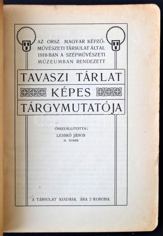 1918 Lesskó János (szerk.): Tavaszi tárlat képes tárgymutatója. Országos Magyar Képzőművészeti Társulat.Kiállítási katalógus. Sok fekete-fehér reprodukcióval és korabeli hirdetésekkel illusztrált. Kiadói papír kötésben. 18x13cm
