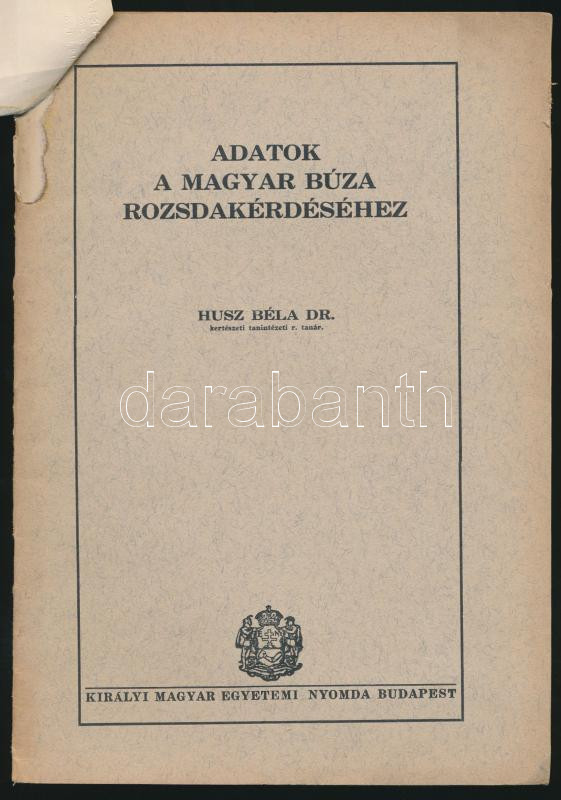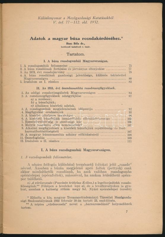 1932 Husz Béla dr.: Adatok a magyar búza rozsdakérdéshez, pp.:75-111, ... https://www.darabanth.com/de/265-Fernauktion/265.0/Andere-Sammelgebiete/Drucksachen~200295/1932-Husz-Bela-dr-Adatok-a-magyar-buza-rozsdakerdeshez-pp75-111-24x17cm~II1323958