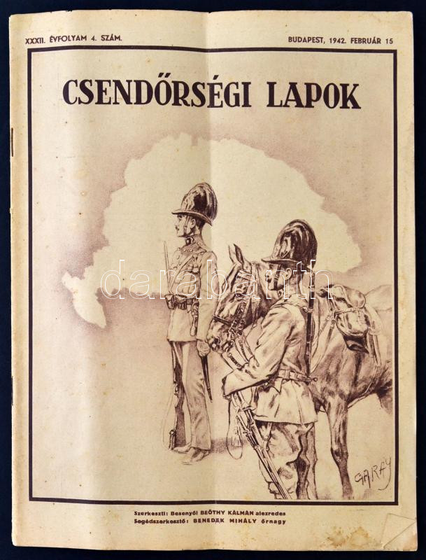 1942 A Csendőrségi Lapok XXXII. évfolyamának 4. száma https://www.darabanth.com/de/265-Fernauktion/265.0/Andere-Sammelgebiete/Drucksachen~200295/1942-A-Csendorsegi-Lapok-XXXII-evfolyamanak-4-szama~II1324974